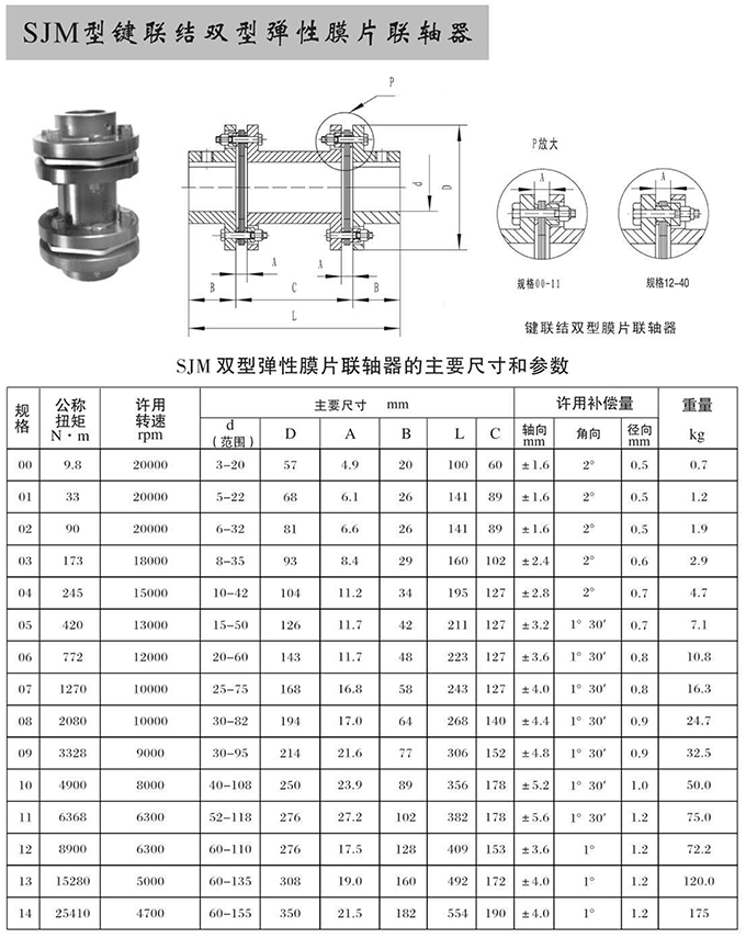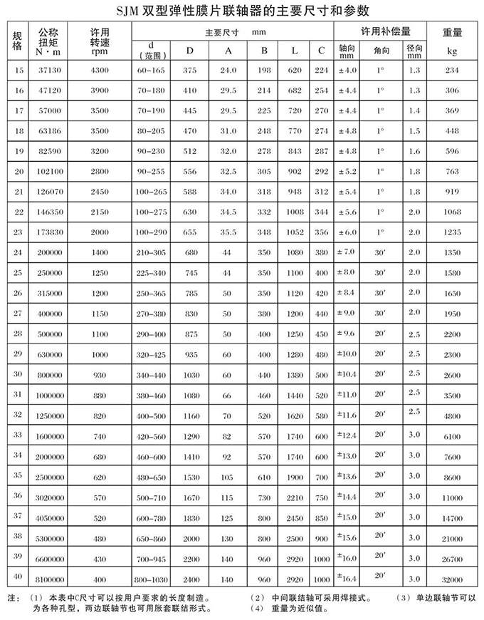 瑞安市寶德隆機械配件有限公司提供SJM型鍵聯(lián)結雙型彈性膜片聯(lián)軸器具有拆裝方便,快速安裝等特點,廣泛用于連接/固定輪轂孔和零件的軸,例如齒輪,錐齒輪,鏈輪,葉輪,凸輪,皮帶輪和飛輪等軸的聯(lián)結固定,咨詢電話:18906872378