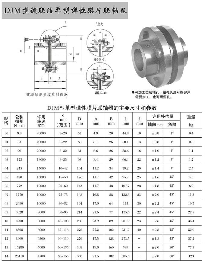 您當(dāng)前的位置:首頁 / 產(chǎn)品展示 / 蛇形聯(lián)軸器系列 / DJM型鍵聯(lián)結(jié)單型彈性膜片聯(lián)軸器