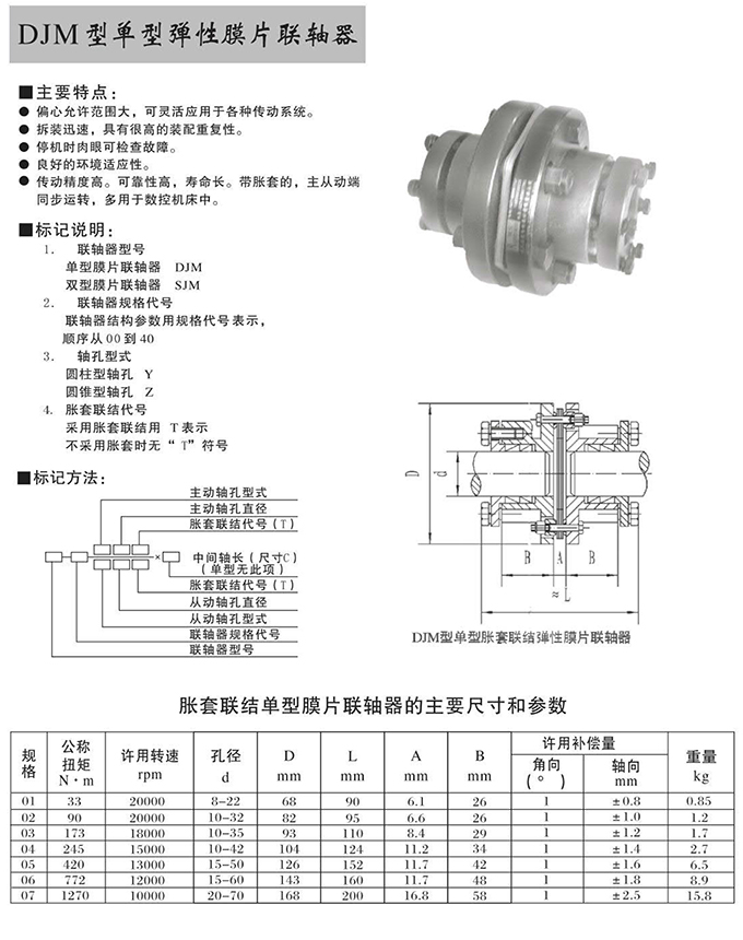 瑞安市寶德隆機械配件有限公司提供DJM型單型彈性膜片聯軸器具有拆裝方便,快速安裝等特點,廣泛用于連接/固定輪轂孔和零件的軸,例如齒輪,錐齒輪,鏈輪,葉輪,凸輪,皮帶輪和飛輪等軸的聯結固定,咨詢電話:18906872378