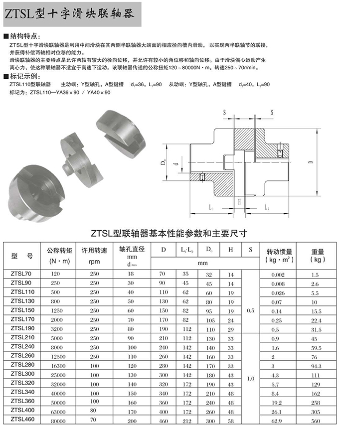 瑞安市寶德隆機械配件有限公司提供ZTSL型十字滑塊聯軸器具有拆裝方便,快速安裝等特點,廣泛用于連接/固定輪轂孔和零件的軸,例如齒輪,錐齒輪,鏈輪,葉輪,凸輪,皮帶輪和飛輪等軸的聯結固定,咨詢電話:18906872378