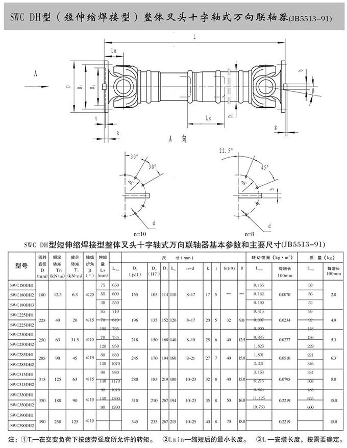 瑞安市寶德隆機械配件有限公司提供SWC DH型(短伸縮焊接型)整體叉頭十字軸式萬向聯(lián)軸器具有拆裝方便,快速安裝等特點,廣泛用于連接/固定輪轂孔和零件的軸,例如齒輪,錐齒輪,鏈輪,葉輪,凸輪,皮帶輪和飛輪等軸的聯(lián)結(jié)固定,咨詢電話:18906872378