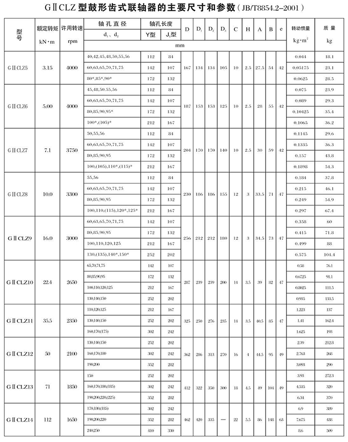 瑞安市寶德隆機械配件有限公司提供GⅡCLZ型鼓形齒式聯(lián)軸器具有拆裝方便,快速安裝等特點,廣泛用于連接/固定輪轂孔和零件的軸,例如齒輪,錐齒輪,鏈輪,葉輪,凸輪,皮帶輪和飛輪等軸的聯(lián)結(jié)固定,咨詢電話:18906872378