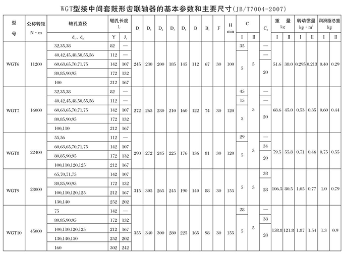 瑞安市寶德隆機械配件有限公司提供WGT型接中間套鼓形齒式聯軸器具有拆裝方便,快速安裝等特點,廣泛用于連接/固定輪轂孔和零件的軸,例如齒輪,錐齒輪,鏈輪,葉輪,凸輪,皮帶輪和飛輪等軸的聯結固定,咨詢電話:18906872378